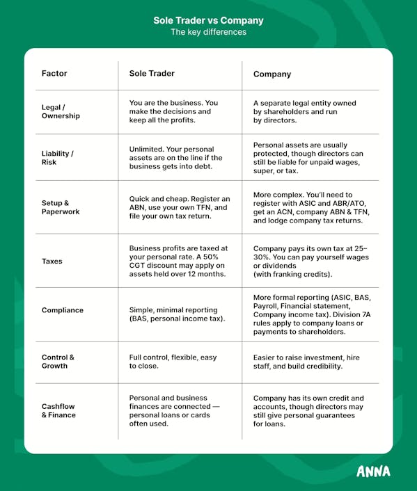 Starting a business in Australia? One of the biggest decisions you’ll make early on is how to set it up. Should you keep things simple and go it alone as a sole trader, or register a company and give your business its own legal life?
