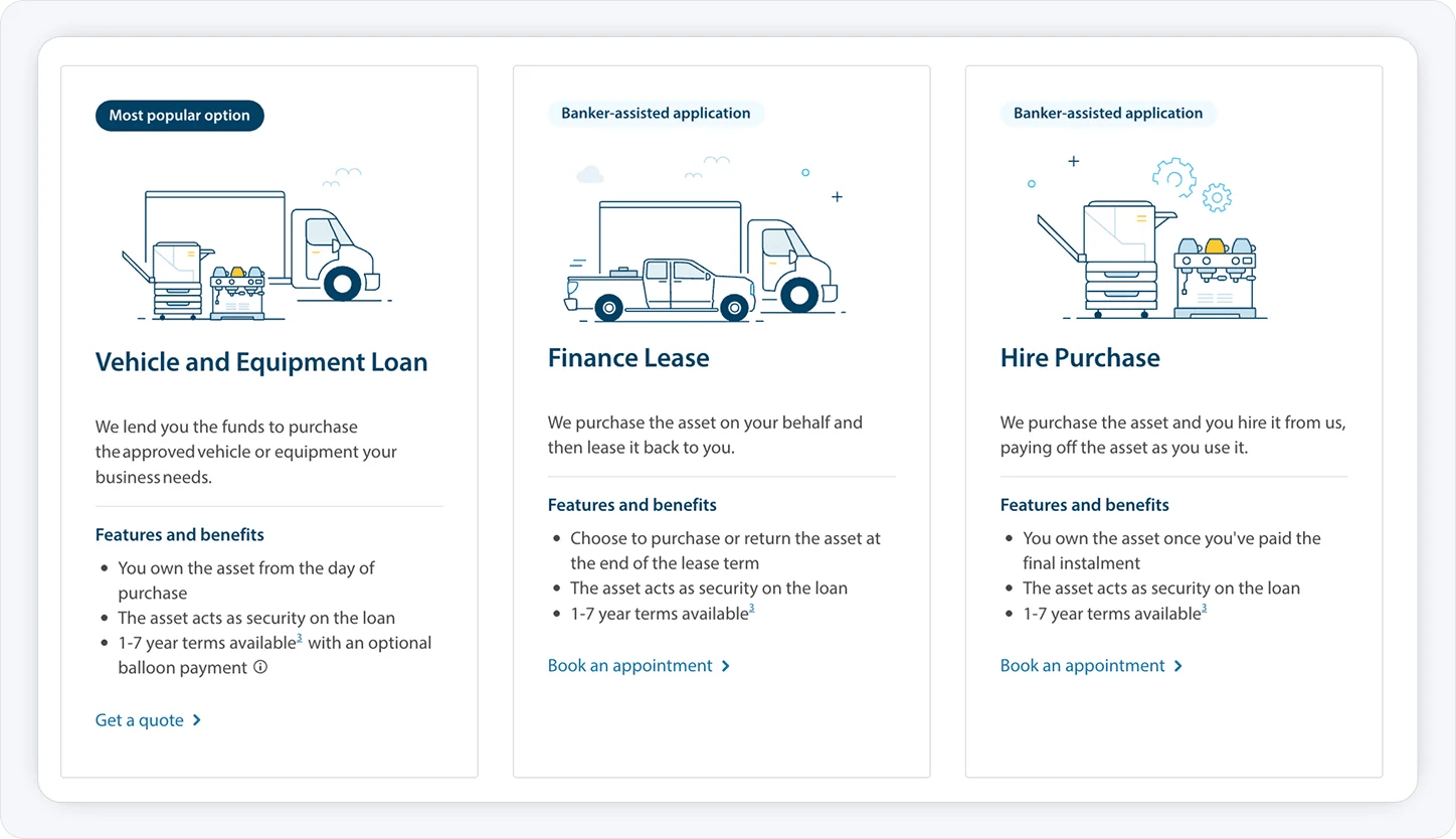 If you need equipment finance, you can schedule an appointment with a business banking specialist to discuss specialised choices and receive advice throughout the process.