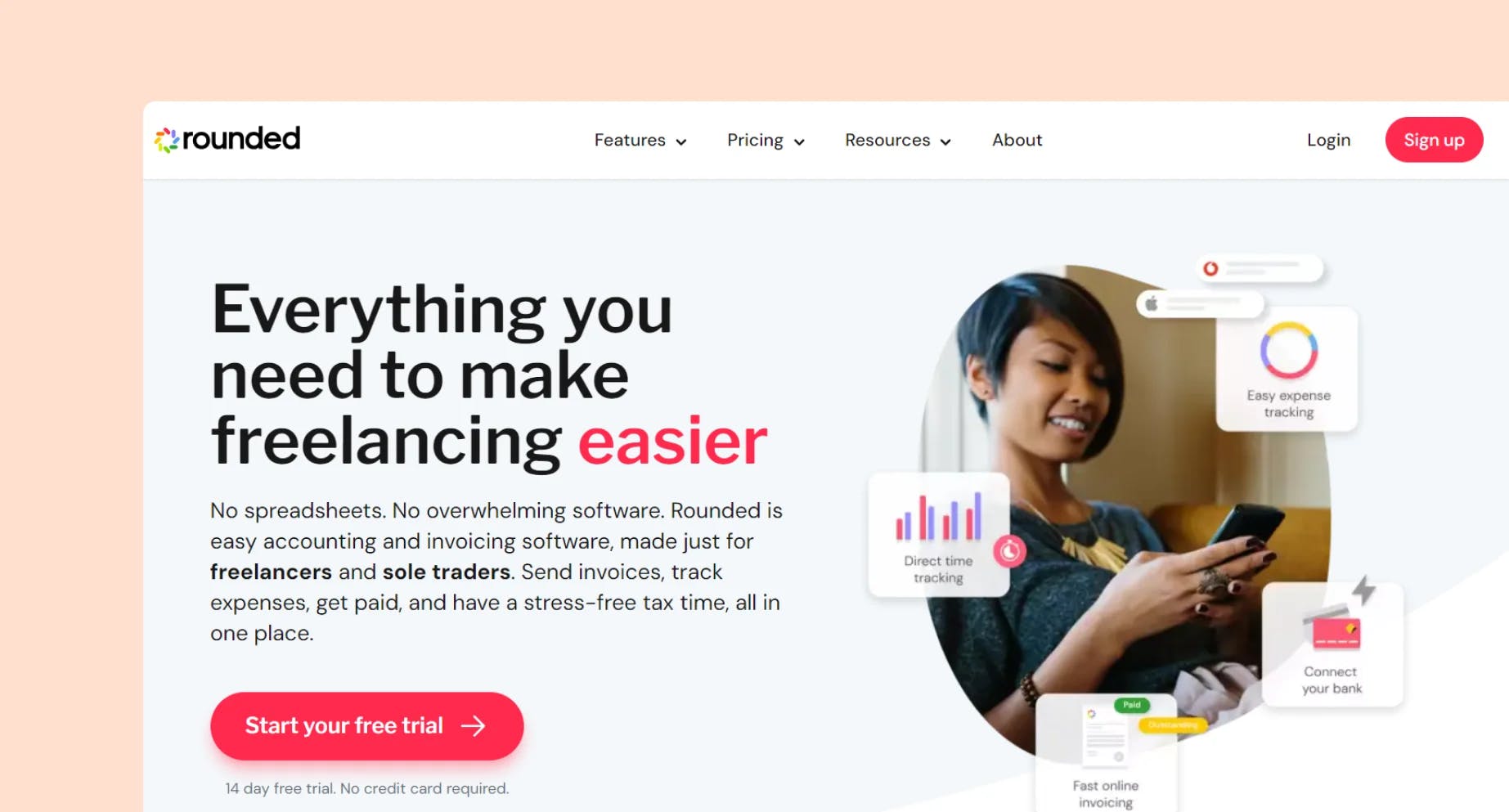 👉 Rounded: Explicitly tailored for freelancers and sole traders, focusing on simplicity and essential features.