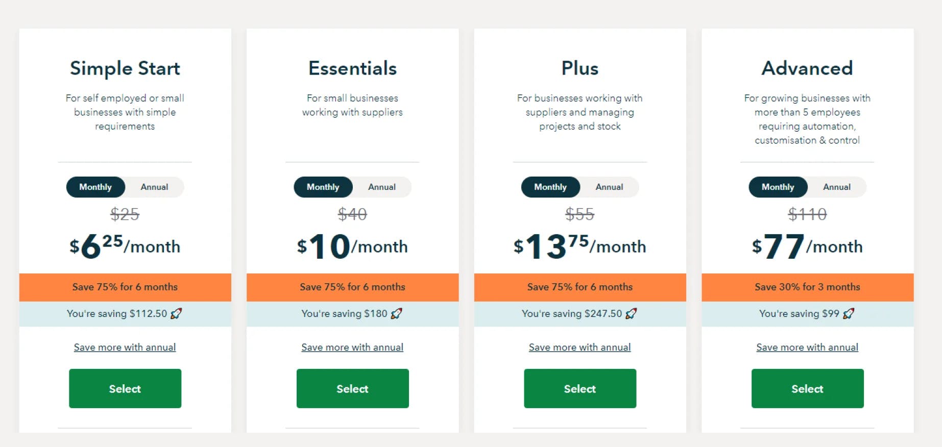 Intuit QuickBooks offers 4 different pricing plans tailored to various business sizes and needs, providing scalable solutions whether you’re a sole trader or managing a larger business.