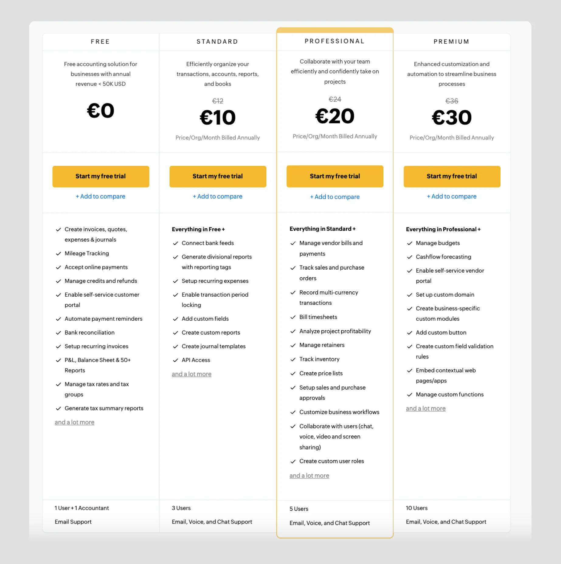 In addition to the free account, you can choose from 3 paid plans as well: