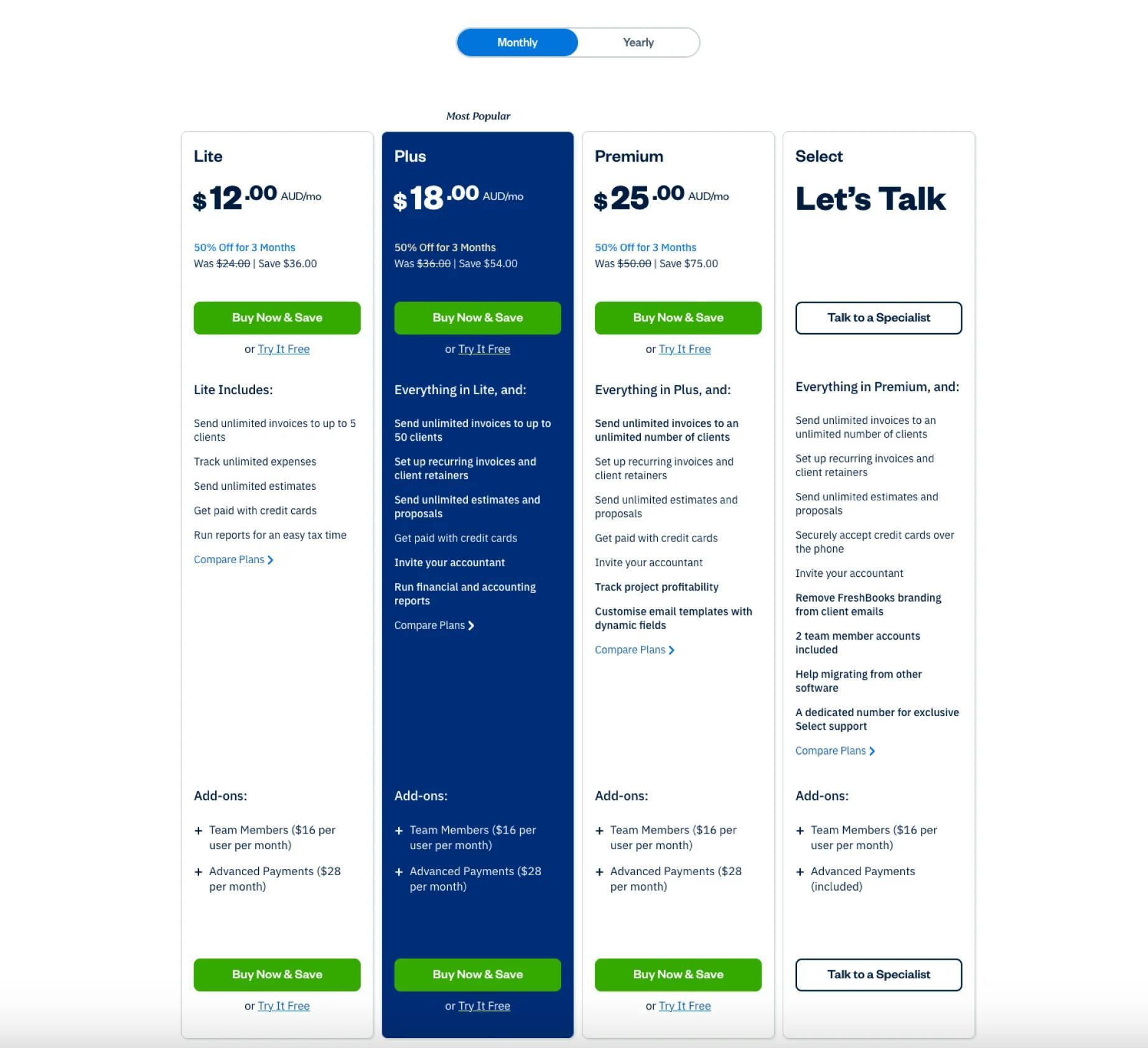 FreshBooks offers you 4 plans: