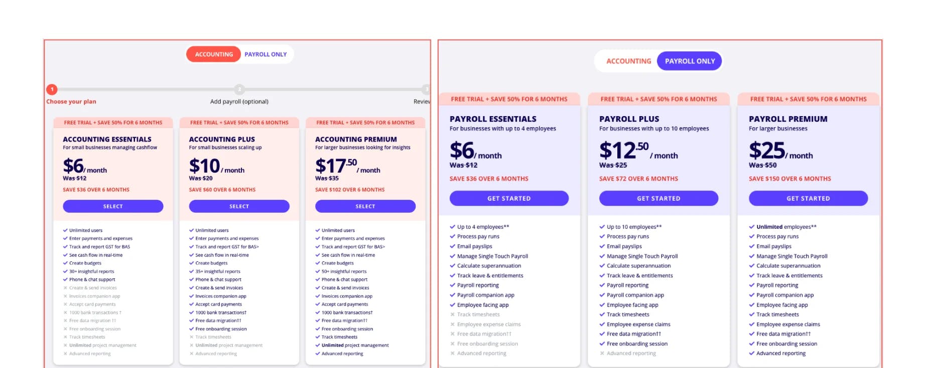 For “Payroll Only” plan, you can select from: