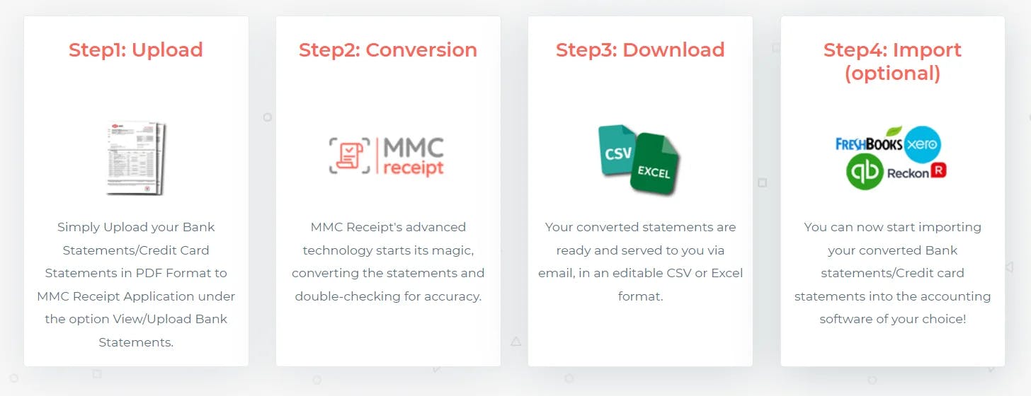 2. Automatic Processing: Once uploaded, MMC Receipt automatically extracts all key information and displays it in an easily manageable format, ready for processing with your linked accounting software.