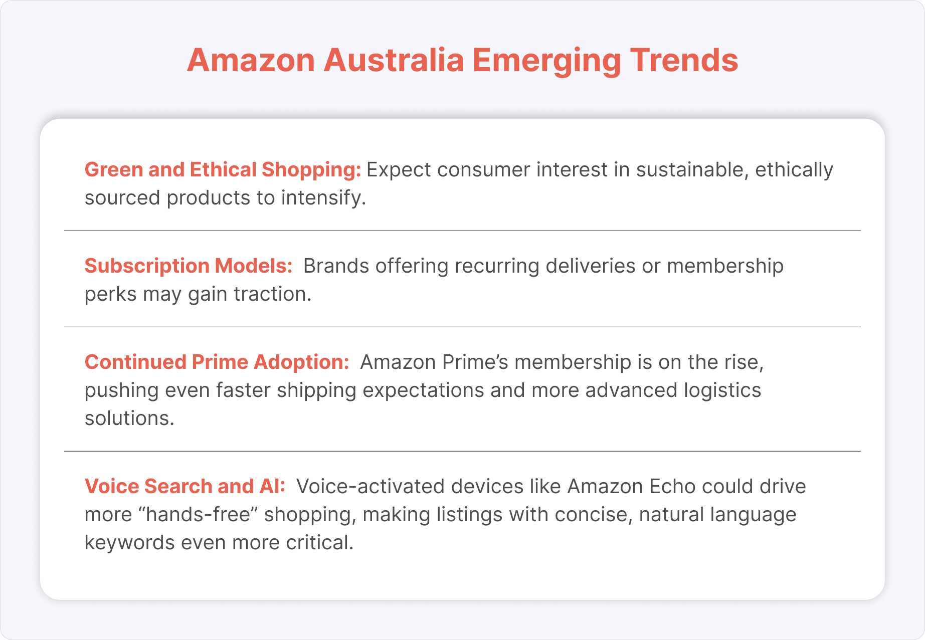 No matter if you’re exploring a new demographic for your existing brand or launching a fresh product line, Amazon Australia is a relatively straightforward way to test the waters.