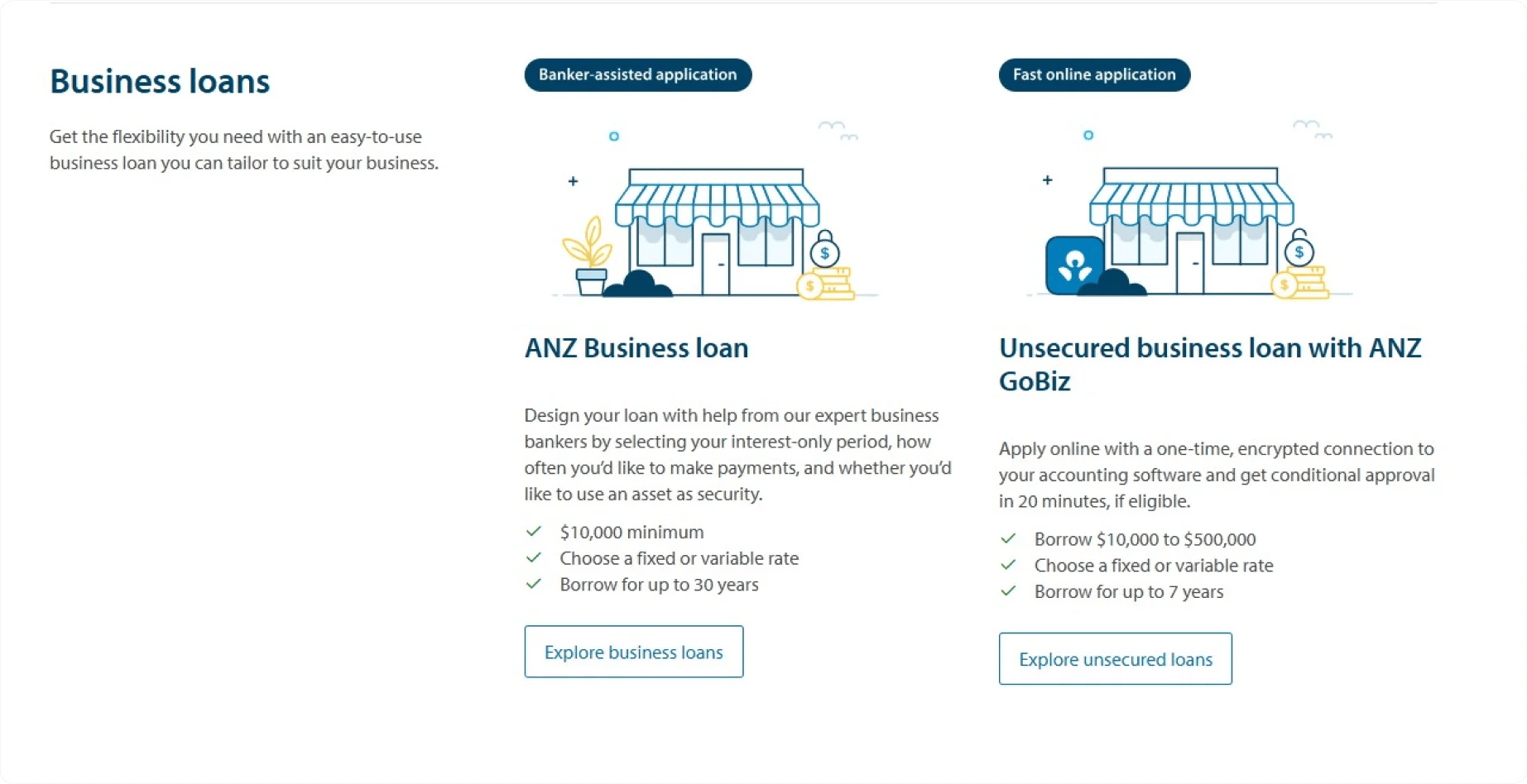 - Business Overdrafts: ANZ offers secured and unsecured overdrafts for businesses needing extra funds to cover unexpected expenses. Interest is charged only on the amount used, with no fixed repayment deadlines.