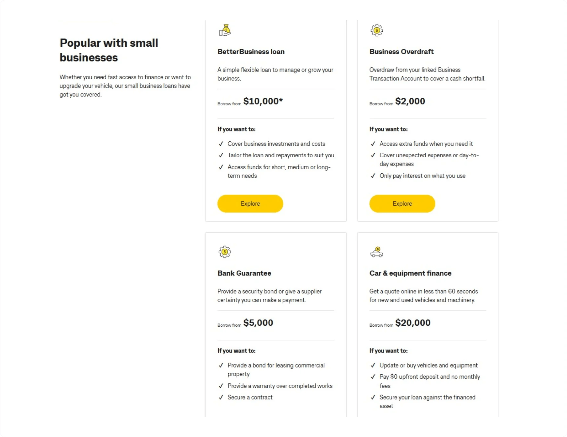 - Small Business Loans: Products like the BetterBusiness Loan and Car & Equipment Finance provide fast and flexible funding options, with the latter designed for upgrading vehicles or machinery with zero upfront deposit.