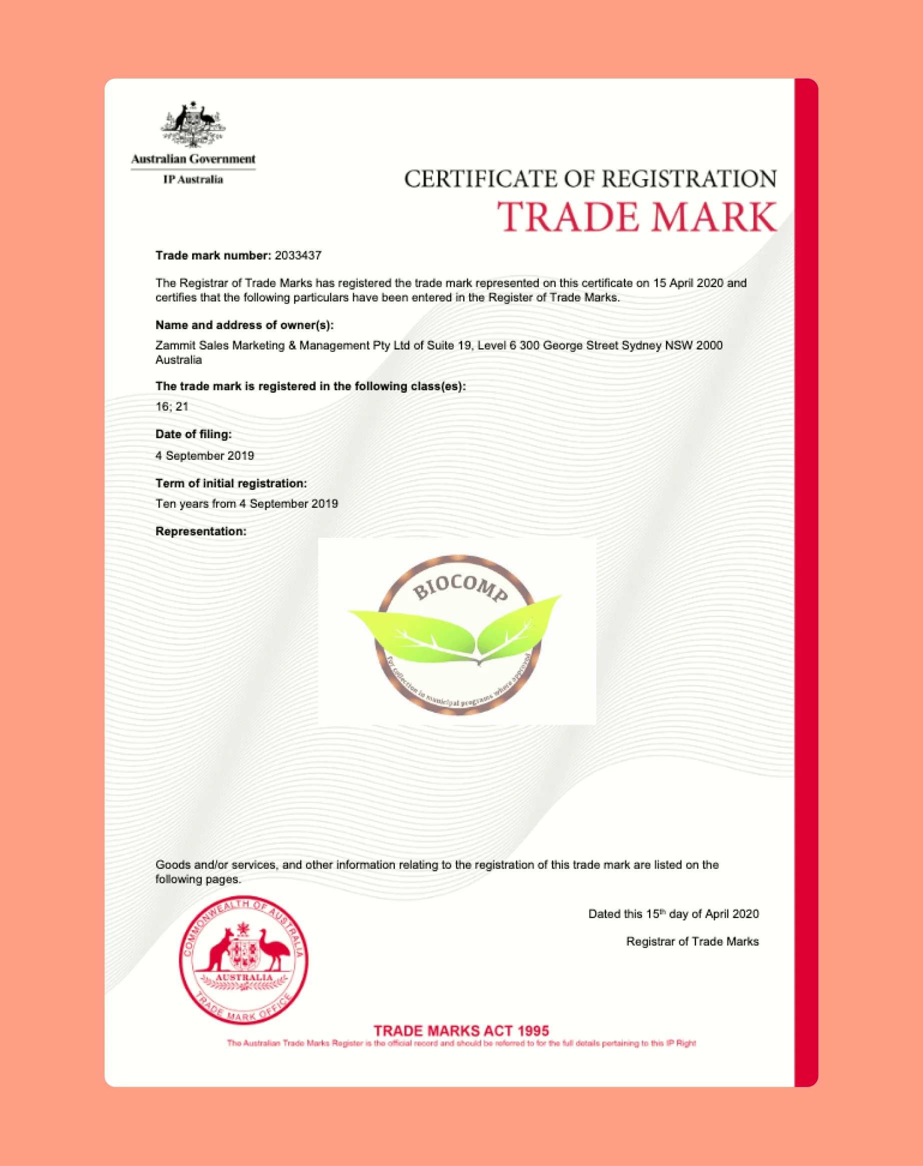 The trademarks undergo review during examination, and you may need to respond to any potential objections raised at this stage. If approved within 6-8 months, you will receive an official certificate of registration from IP Australia.