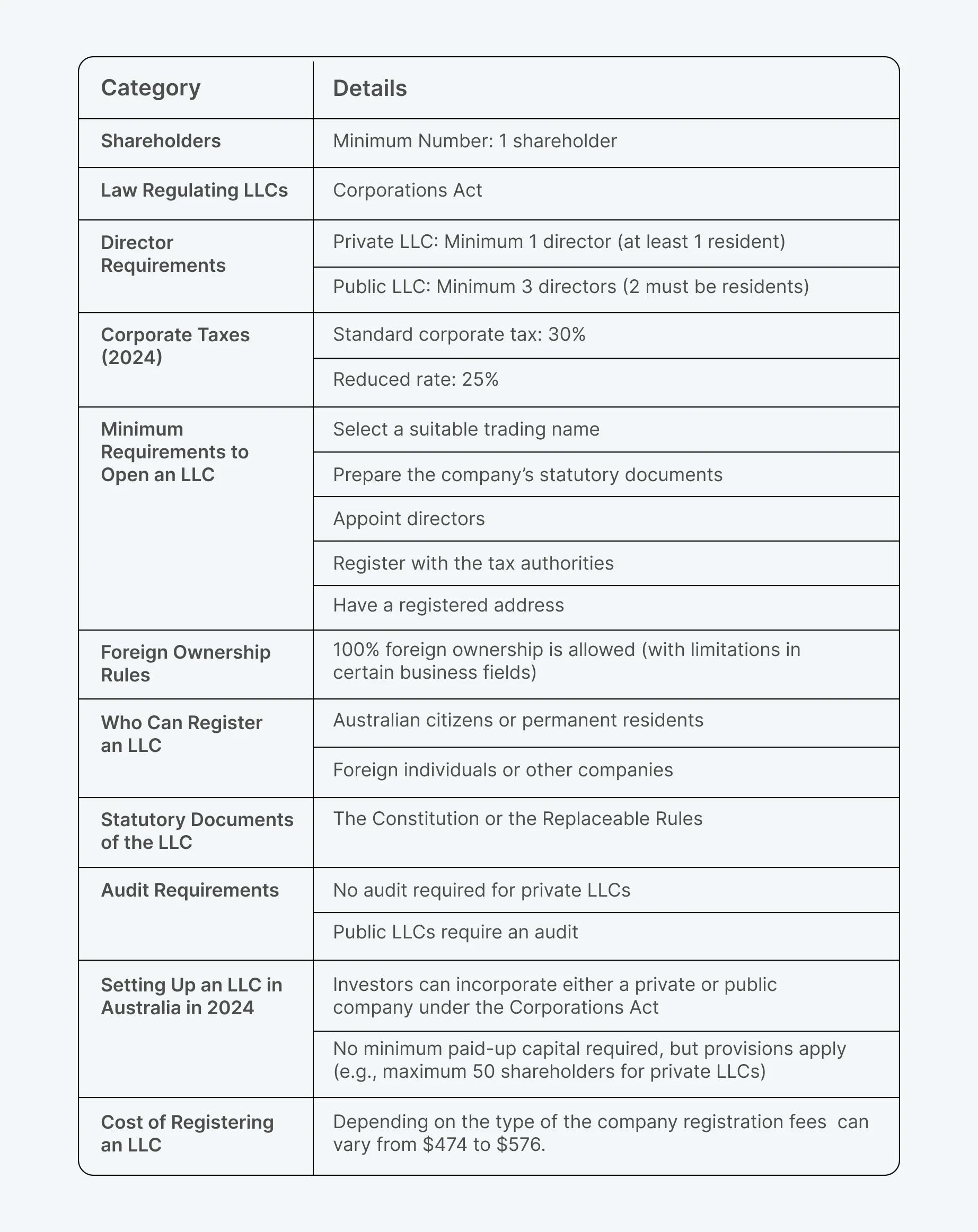 Before we wrap things up, we would like also to introduce you to key points you need to know if you're thinking about starting an LLC in Australia: