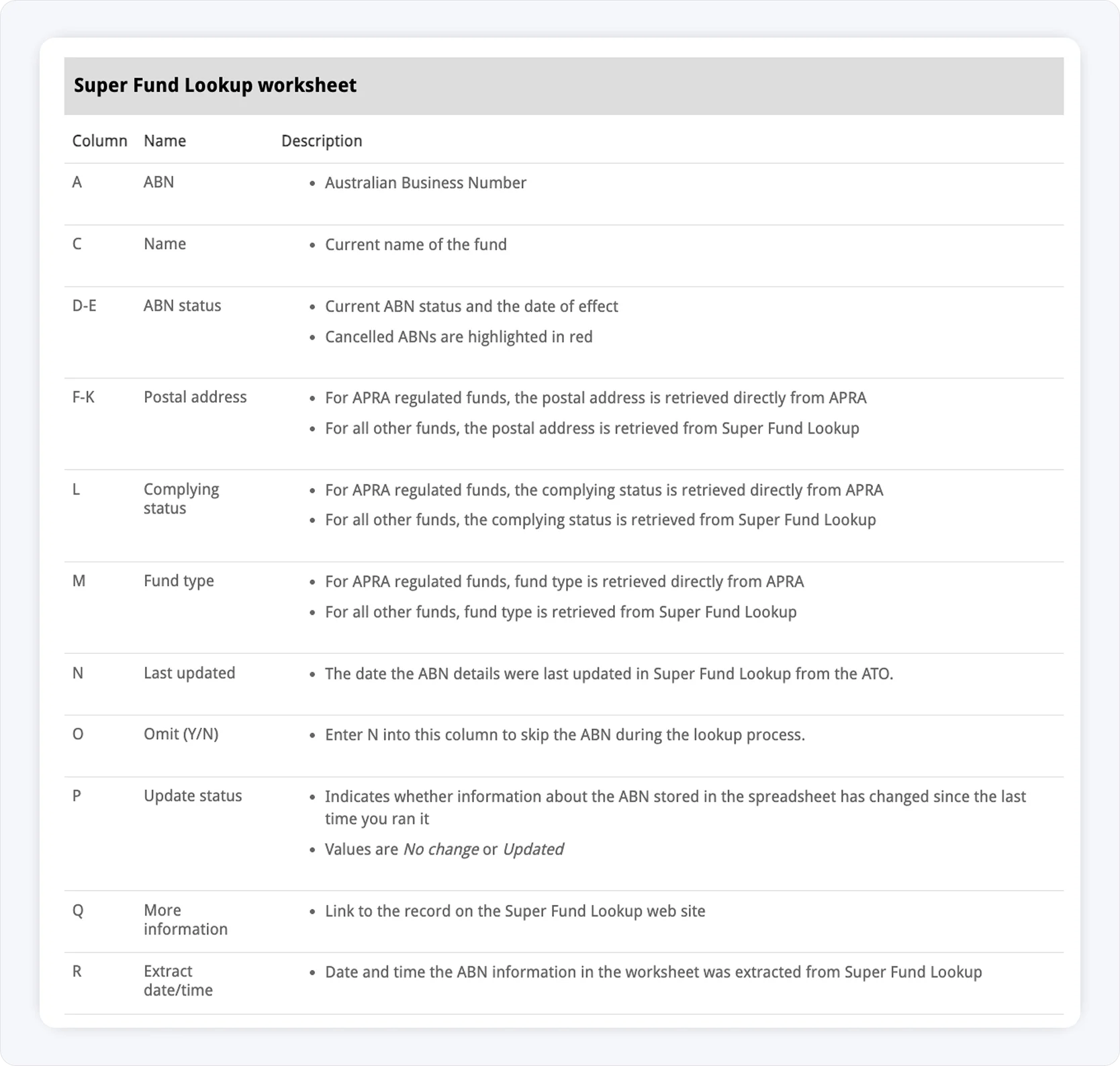 Remember that you require Microsoft Excel 2010 or above with macros enabled, and to use the Super Fund ABN Lookup tool, you must be connected to the Internet.